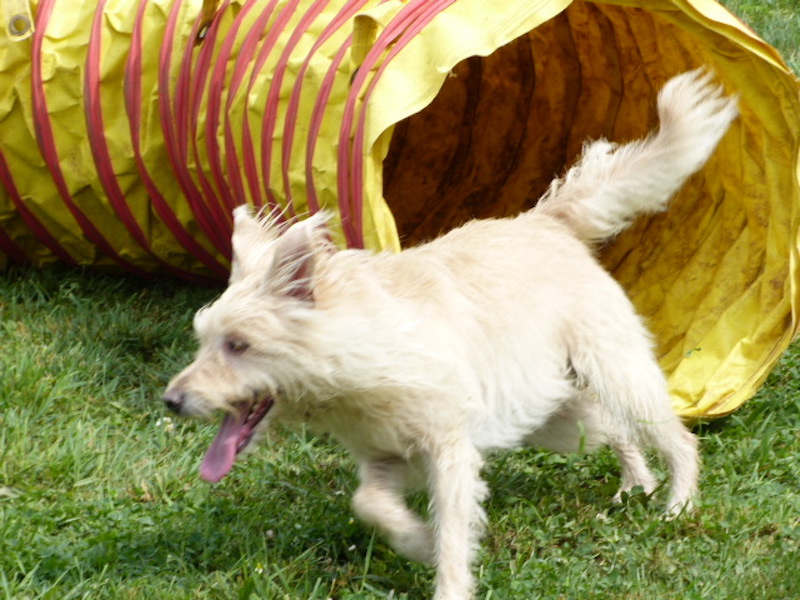 In dem Grundkurs wird der Hund langsam und mit viel spielerischer Motivation an einige Hindernisse herangeführt. Der Hundeführer wird in das richtige Motivieren und Spielen mit dem Hund eingewiesen.